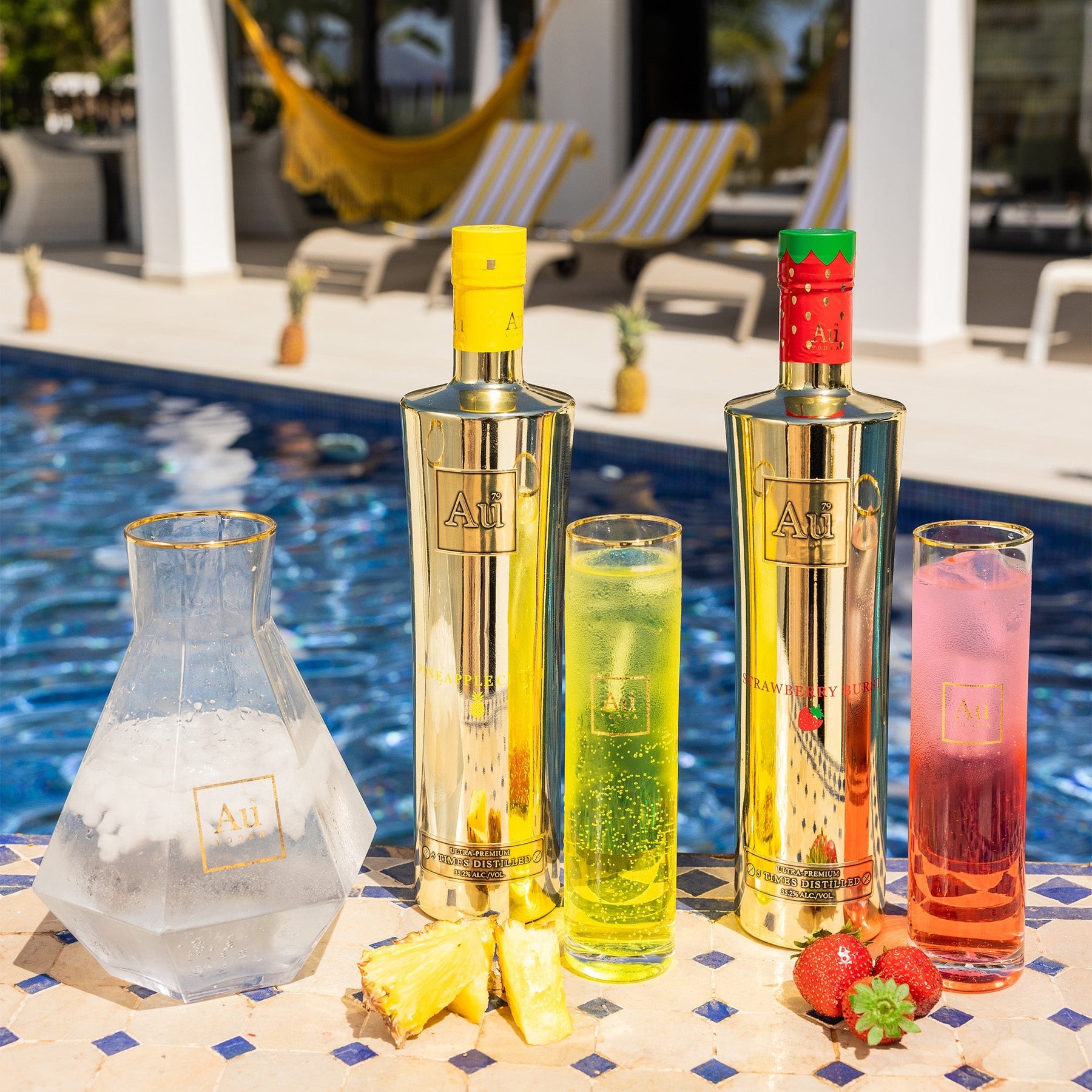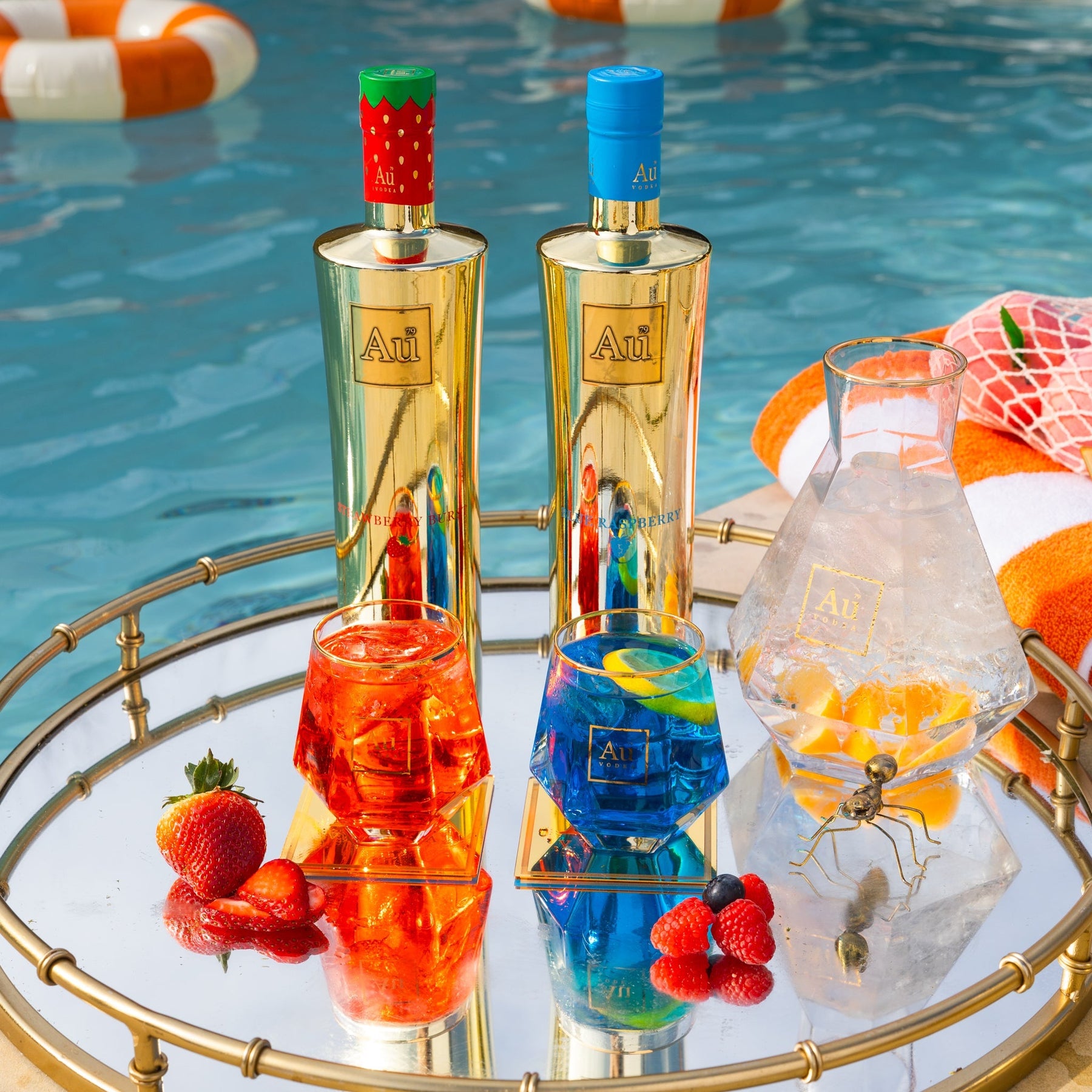 Made from British wheat and distilled five times, every bottle is gold-filtered for exceptional smoothness and finished in Au’s iconic metallic gold bottle. Whether you're restocking your bar, building your collection, or sharing with friends, this combo brings luxury and flavor together in one exclusive set.