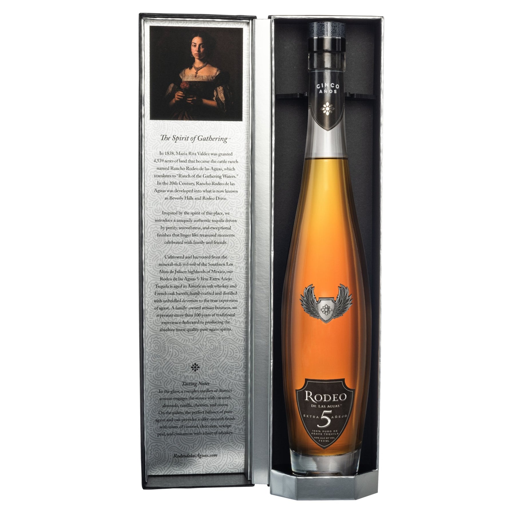 Twice distilled and matured for 5 years in American oak whiskey and French oak barrels, Rodeo de las Aguas Extra Añejo is purposely stored in ideal temperature and humidity conditions, manifesting a truly exceptional and perfectly balanced aged tequila.