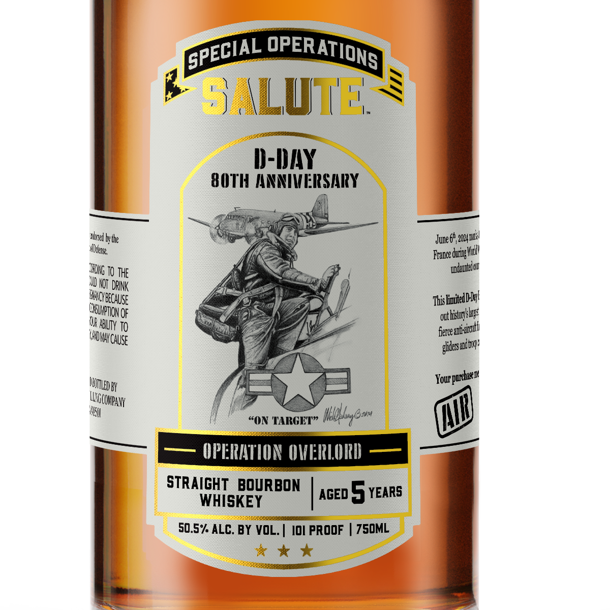 This limited D-Day Edition Whiskey honors the intrepid airmen of the allied air forces who carried out history’s largest aerial operation, mostly at night and in low cloud cover. Flying directly through fierce anti-aircraft fire in near-zero visibility, these heroes piloted their fighters, bombers, transports, gliders and troop carriers “ON TARGET”, helping to liberate France and turn the tide of the war.