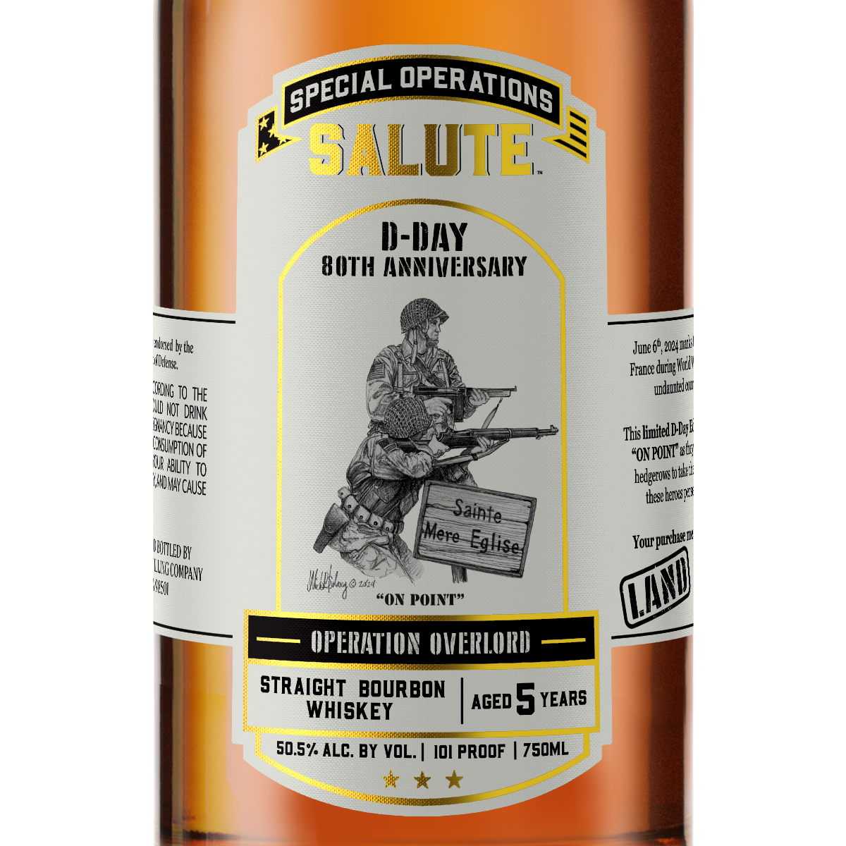 This limited D-Day Edition Whiskey honors the daring soldiers of the allied ground forces who stayed “ON POINT” as they parachuted, glider-landed, assaulted beaches, climbed cliffs, and plowed through hedgerows to take the fight to the enemy. Chaos and confusion reigned and losses were staggering, but these heroes persevered to win the battle, helping to liberate France and turn the tide of the war.