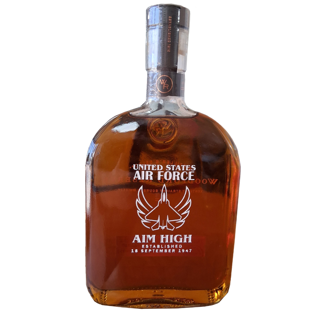 The Woodford Reserve Straight Bourbon “United States Air Force” Limited Edition Etched Bottle (750mL) is a tribute to precision, honor, and service. This collector’s edition bottle proudly features a deep-etched Air Force emblem and the “Aim High” motto, commemorating the establishment of the U.S. Air Force on September 18, 1947. This bottle is engraved by MemoryBottles.com, the nation’s premier custom spirits engraver.