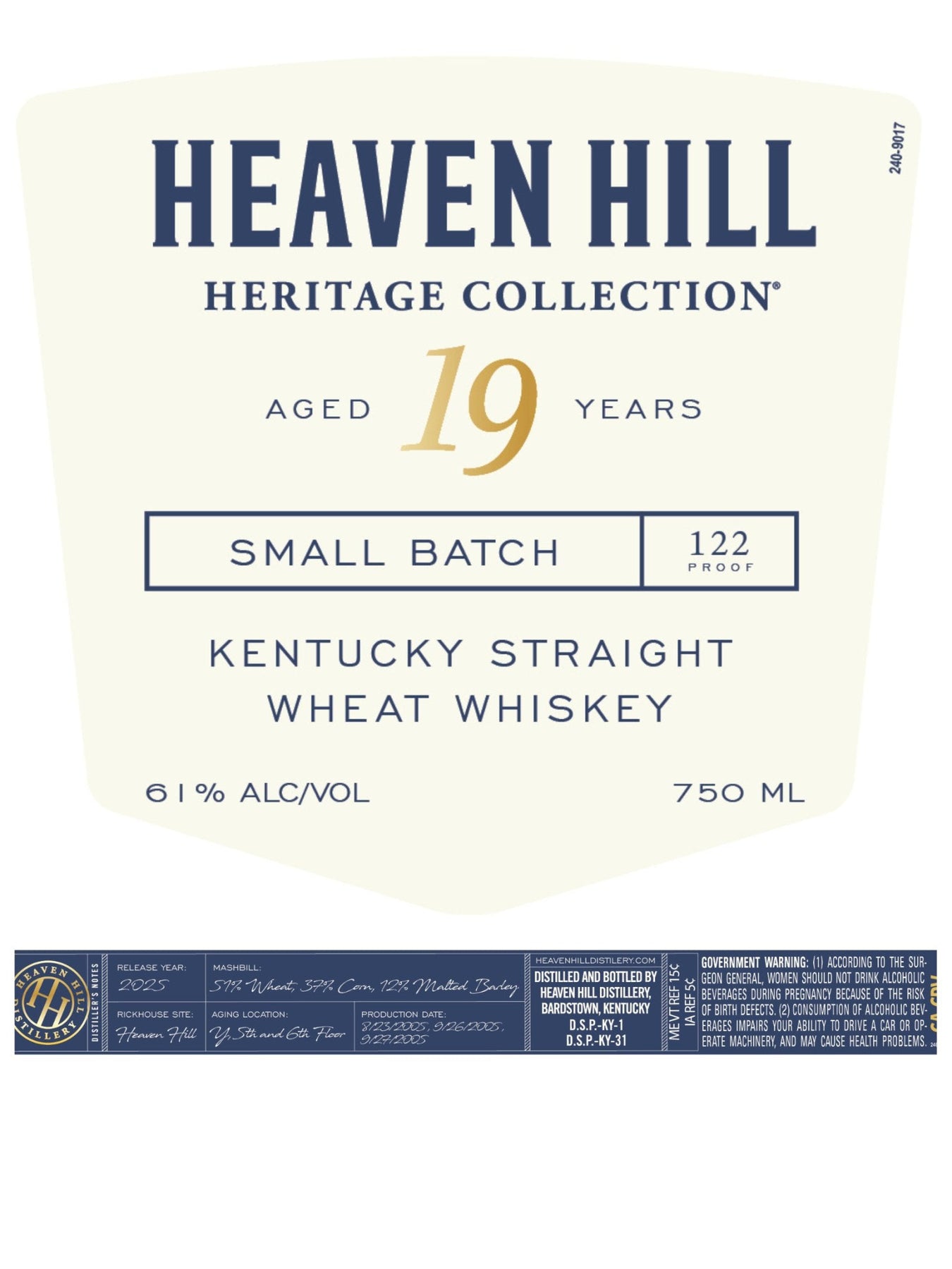 Introducing Heaven Hill Heritage Collection 19-Year-Old Kentucky Straight Wheat Whiskey. This small batch release is a true expression of Heaven Hill’s commitment to quality and craftsmanship, aged for 19 years to deliver a complex, refined character. Bottled at an impressive 122 proof (61% ABV), this whiskey offers a bold, full-bodied experience, reflecting the robust flavors of its extended aging.