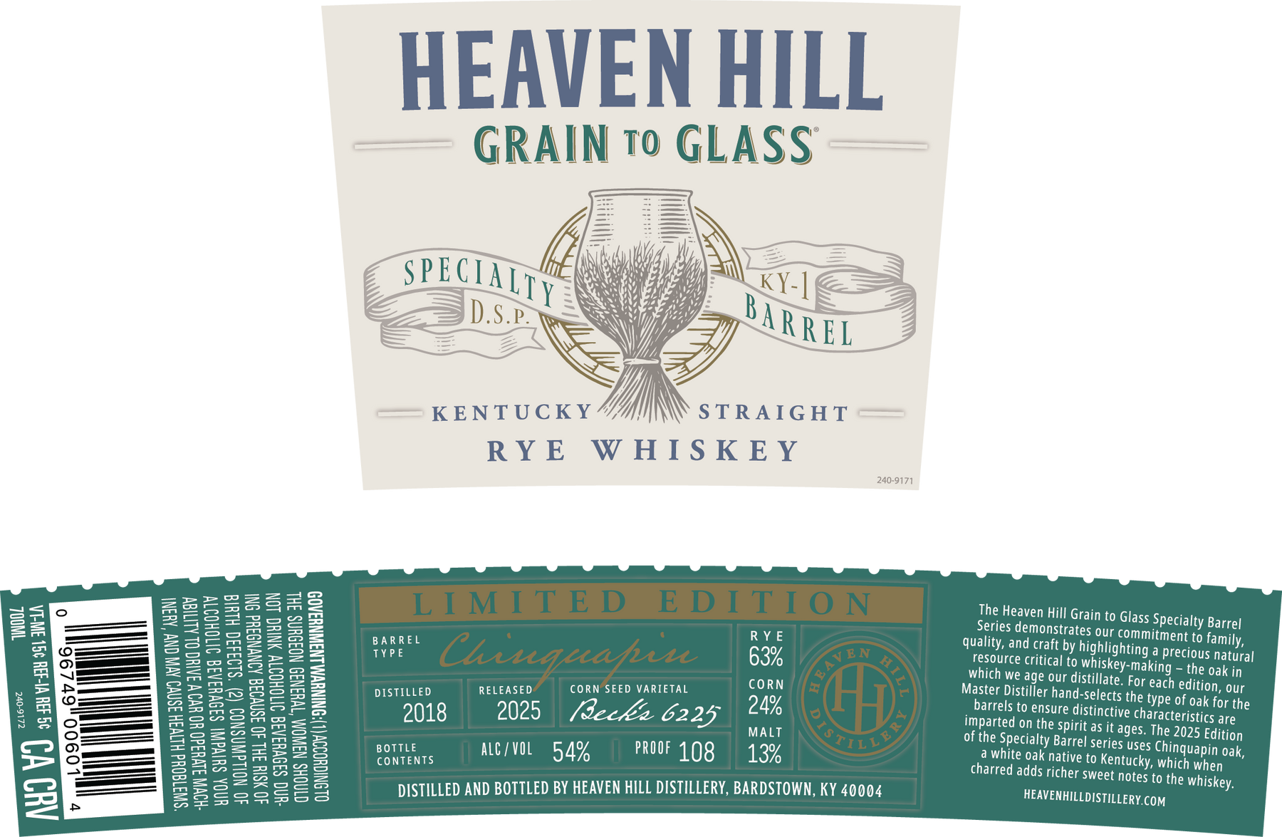 Introducing the Heaven Hill Grain to Glass Rye Whiskey – Chinquapin Oak Edition, a standout in the distillery’s celebrated Specialty Barrel Series. This limited-edition Kentucky Straight Rye showcases Heaven Hill’s full grain-to-glass process and relentless dedication to detail—from heirloom grain varietals to carefully selected oak maturation.