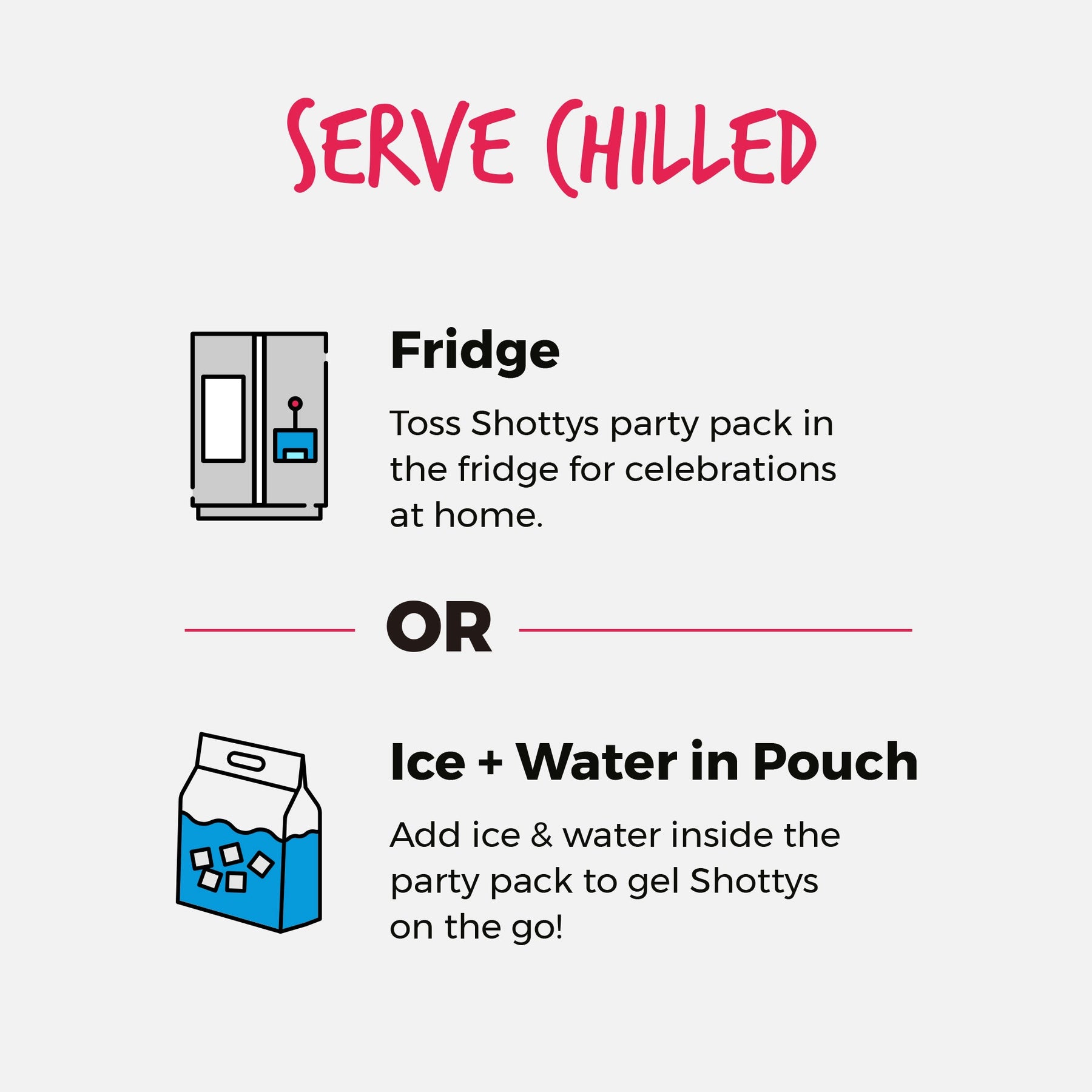 Bring the fun and be the Party Hero® with Shottys! Simply add ice and water to your pouch or throw these bad boys in the fridge, and with the magic of unicorns, your shots will gel right up. Shottys 8-packs are perfect for sharing with friends (or not, we won’t judge). Better yet, pair a few 8-packs together and you’ll be set for bbqs, tailgates, and all your shenanigans. So let’s get this party started, and make sure to give everyone a shot.